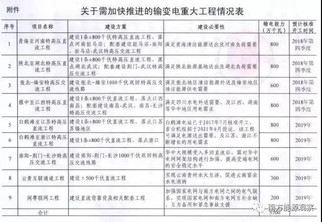 重點工程計劃主要項目涉及西北、西南清潔能源外送至江蘇、浙江等負(fù)荷中心,核準(zhǔn)開工時間集中在年內(nèi)及2019年,可謂時間緊迫。