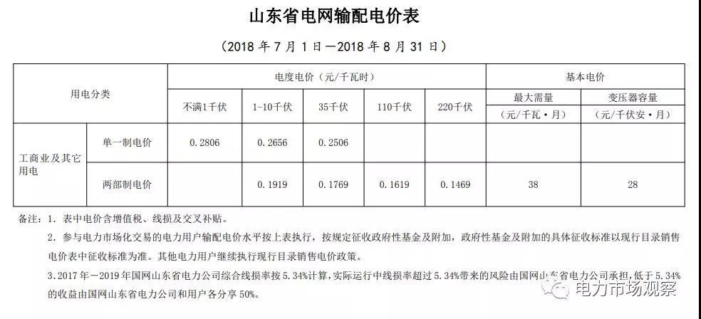 1.山東省電網(wǎng)銷售電價表、山東省電網(wǎng)輸配電價表(2018年7月1日-8月31日)