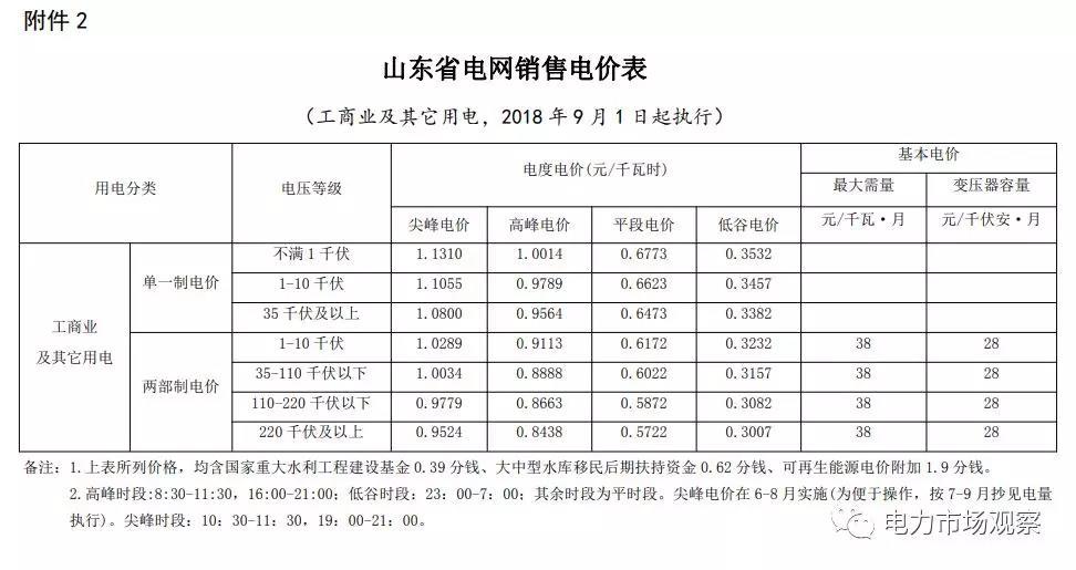 2.山東省電網(wǎng)銷售電價表、山東省電網(wǎng)輸配電價表(2018年9月1日起執(zhí)行)