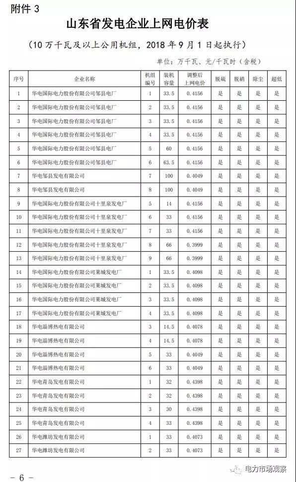 3.山東省發(fā)電企業(yè)上網(wǎng)電價表(2018年9月1日起執(zhí)行)