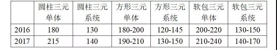 經(jīng)過一段時(shí)間的發(fā)展,磷酸鐵鋰和三元鋰電池的技術(shù)水平得到明顯提升。在成本方面,磷酸鐵鋰電池組價(jià)格從2017年年初的1.8-1.9元/Wh下降到年底的1.45-1.55元/Wh。三元?jiǎng)恿﹄姵匕鼉r(jià)格從年初的1.7-1.8元/Wh下降到年底的1.4-1.5元/Wh。
