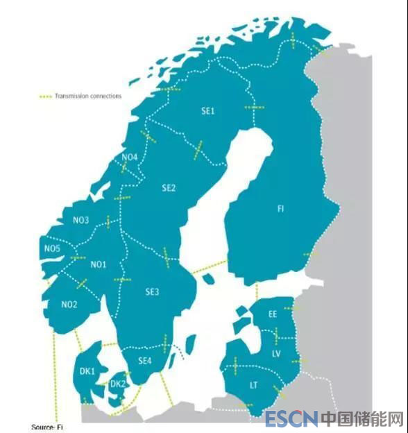 北歐電力市場是國際上第一個真正意義的跨國電力市場,其形成過程是一家市場做強、周邊國家紛紛加入的模式,運行幾十年來獲得了豐富的經驗。北歐地區(qū)主要指挪威(Norway)、丹麥(Denmark)、瑞典(Sweden)和芬蘭(Finland)四個國家。四個國家電力系統(tǒng)聯系緊密,已經形成統(tǒng)一的大電網,并且和周圍鄰近歐洲國家也有聯絡線相連。北歐四國之所以能形成統(tǒng)一電力市場,與其電源的互補性密切相關。挪威絕大部分為水電。瑞典和芬蘭的能源構成中核電占比較大,其次為水電。在瑞典其他能源類型中,生物質能發(fā)電及石油發(fā)電占了很高比例達到45.8%。在丹麥原先大部分為火電,但隨著可再生能源的利用,風電的比例在持續(xù)提高,占到總額的近一半左右。