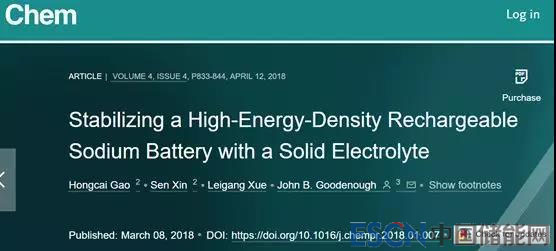 [6] Gao H, Xin S,Xue L, et al. Stabilizing a High-Energy-Density Rechargeable Sodium Batterywith a Solid Electrolyte[J]. Chem, 2018,4(4):833-844.