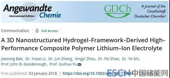 [3] Bae J, Li Y,Zhang J, et al. A 3D Nanostructured Hydrogel-Framework-Derived High-PerformanceComposite Polymer Lithium-Ion Electrolyte[J]. Angewandte Chemie InternationalEdition, 2018,57(8):2096-2100.