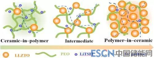 為了平衡這兩種效應(yīng),Goodenough采用水凝膠衍生的方法構(gòu)建了3D -LLZTO /PEO復(fù)合電解質(zhì)。他們將LLZTO融入水凝膠模板中然后除去模板,再用PEO進(jìn)行澆鑄干燥[3]。