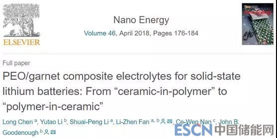2017年底,Goodenough 老先生連同北科大范麗珍教授報(bào)道了有關(guān)聚合物-無機(jī)陶瓷復(fù)合電解質(zhì)的研究成果[2]。