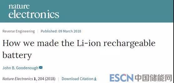 2018年3月,Goodenough在Nature Electronics上發(fā)表了題為How we made the Li-ion rechargeable batteries的文章[1]。文章回顧了20世紀(jì)60年代以來二次電池的發(fā)展歷程,并在文章結(jié)尾為新時(shí)期二次電池的發(fā)展指明了方向——全固態(tài)電池。