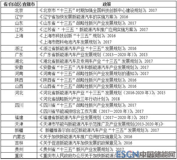 早在2001年,科技部發(fā)布的“國(guó)家“863”計(jì)劃重大專項(xiàng)”就將燃料電池汽車研究開發(fā)列入其中;到了近些年,緊密出臺(tái)的《節(jié)能與新能源汽車產(chǎn)業(yè)發(fā)展規(guī)劃(2012—2020年)》、《中國(guó)制造2025》、《能源技術(shù)革命創(chuàng)新行動(dòng)計(jì)劃(2016-2030年)》、《國(guó)家創(chuàng)新驅(qū)動(dòng)發(fā)展戰(zhàn)略綱要》、《“十三五”國(guó)家戰(zhàn)略性新興產(chǎn)業(yè)發(fā)展規(guī)劃》以及《汽車產(chǎn)業(yè)中長(zhǎng)期發(fā)展規(guī)劃》等文件,均明確提及要重點(diǎn)研發(fā)氫能與燃料電池技術(shù),表現(xiàn)出中央政府對(duì)該新型能源技術(shù)的大力支持。此外,多個(gè)省/自治區(qū)/直轄市也積極布局燃料電池產(chǎn)業(yè),形成了巨大的引領(lǐng)效應(yīng)(統(tǒng)計(jì)如下表)。