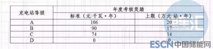 一是日??己霜剟?,即每三個月對公用充電站的平均充電收費(fèi)標(biāo)準(zhǔn)、利用率等經(jīng)營情況進(jìn)行考核評價(jià),引導(dǎo)企業(yè)通過優(yōu)化收費(fèi)標(biāo)準(zhǔn)、創(chuàng)新運(yùn)營模式等方式提質(zhì)增效。根據(jù)考核情況,對考核評價(jià)最好的A級充電站給予每度電0.2元的獎勵,獎勵上限為1500度/千瓦·年。