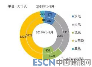 圖 2 2018年1-8月我國(guó)新增裝機(jī)分類型占比情況