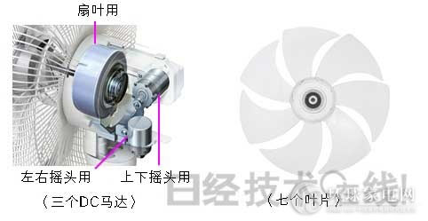 據(jù)稱,DC馬達由模具樹脂一體成形,葉片的中心部分加入了橡膠以吸收振動,因此可以減小工作噪聲