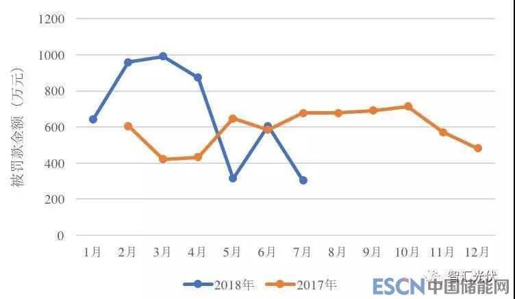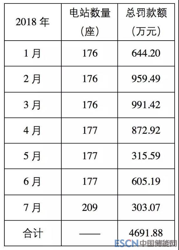 表:2018年1~7月,青海省光伏電站被罰款金額