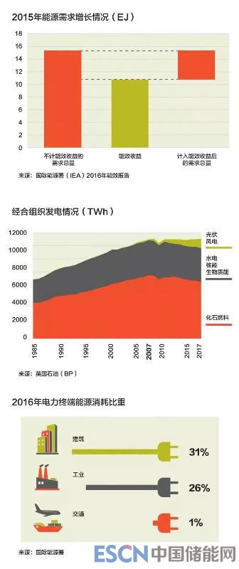 中國(guó)和印度正在用太陽(yáng)能和風(fēng)電取代化石燃料。2012年和2016年,中國(guó)分別取代美國(guó)成為全球最大的太陽(yáng)能和風(fēng)電國(guó)以及最大的電動(dòng)汽車(chē)生產(chǎn)國(guó)。國(guó)際能源署預(yù)計(jì),今后25年,27%的能源需求的增長(zhǎng)將來(lái)自印度,19%將來(lái)自中國(guó)。