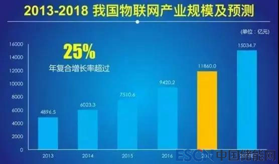 比較一下,若物聯(lián)網(wǎng)產(chǎn)業(yè)規(guī)模超過1萬億,則意味著其產(chǎn)業(yè)規(guī)模接近國內(nèi)住宿餐飲業(yè)的規(guī)模,而且2018年大概率會超過住宿餐飲業(yè)的規(guī)模,達(dá)到信息傳輸、軟件和信息技術(shù)服務(wù)業(yè)43%以上,達(dá)到交通運(yùn)輸、倉儲和郵政業(yè)的1/3,達(dá)到租賃和商務(wù)服務(wù)業(yè)的一半以上。所以說超過1萬億的產(chǎn)業(yè)在國民經(jīng)濟(jì)中是一個龐大的存在,能夠問鼎國民經(jīng)濟(jì)前十大行業(yè)。