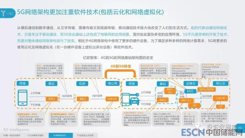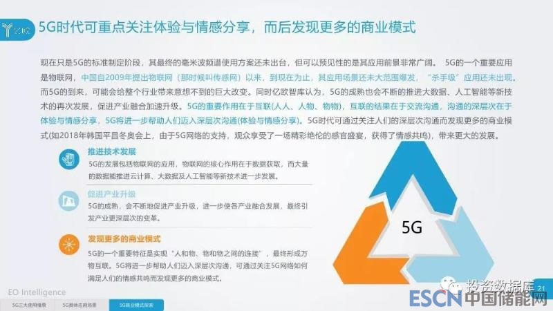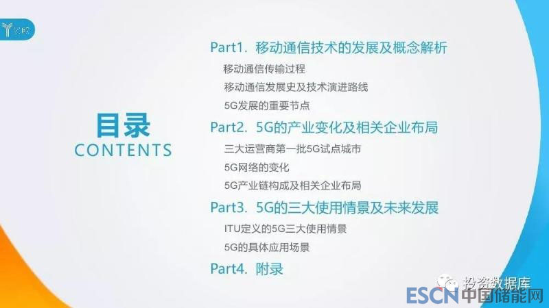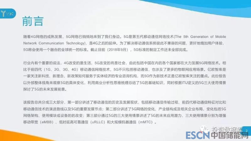 報告分為三個部分,第一部分講述了移動通信的歷史及發(fā)展現(xiàn)狀,包括移動通信傳輸過程、前四代移動通信特征對比和其技術(shù)的演進路線以及5G的重要發(fā)展節(jié)點;第二部分講述了5G網(wǎng)絡(luò)的變化、產(chǎn)業(yè)鏈構(gòu)成及相關(guān)企業(yè)布局;第三部分通過5G的三大使用情景講述了5G的未來應用潛力。
