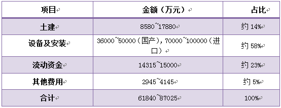 年產(chǎn)10億瓦時動力鋰離子電池的投資構(gòu)成