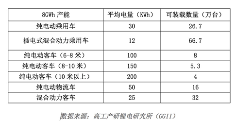 若按意見稿要求,單家企業(yè)產(chǎn)能規(guī)劃將與當(dāng)前國內(nèi)新能源汽車需求嚴(yán)重不符合。其中,8GWh動力鋰電池將滿足以下不同車型的裝機量。