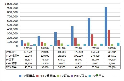 2016~2020年中國新能源汽車產(chǎn)銷量預測(單位:輛)