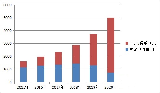 針對圖8的新能源汽車產(chǎn)銷量預測,真鋰研究預計到2020年,中國新能源汽車市場的動力鋰離子電池總需求量將接近5,000萬kWh,其中磷酸鐵鋰電池還將經(jīng)歷2年緩慢增長,到2019年開始,絕對需求量將會下降,2020年快速降到750萬kWh左右;預計2018年純電動客車領(lǐng)域?qū)θ姵亟饨?,此后三元電池的需求量會大爆發(fā),到2020年將會達到4,250萬kWh左右,從而基本完成對中國新能源汽車市場的統(tǒng)治,而磷酸鐵鋰電池則會將市場重心轉(zhuǎn)移至儲能領(lǐng)域。