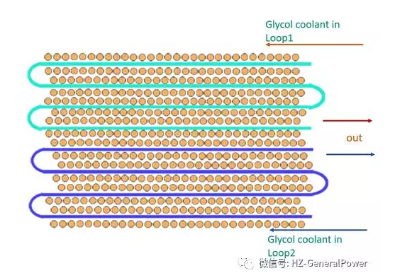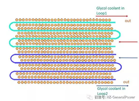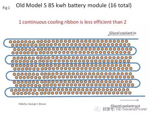 目前來(lái)看,P100D之所以能夠“擠進(jìn)”更多的電芯,很大一部分是得益于冷卻系統(tǒng)的重新設(shè)計(jì)。冷卻系統(tǒng)的重新設(shè)計(jì)要保證兩個(gè)基本點(diǎn):(1)騰出更多的空間;(3)保證冷卻效果。P100D的冷卻系統(tǒng)如下圖: