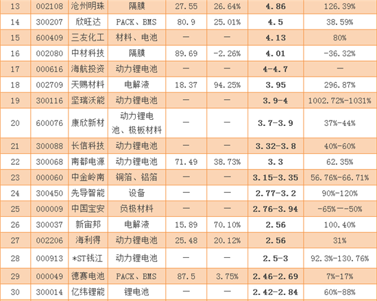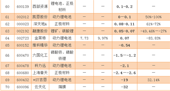 在70家已發(fā)布業(yè)績(jī)預(yù)告的企業(yè)中,凈利潤(rùn)排名前10的鋰電上市公司分別是比亞迪、*ST金瑞、中天科技、天齊鋰業(yè)、佛山照明、必康股份、保千里、嘉化能源、鹽湖股份、勝利精密。