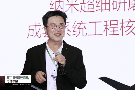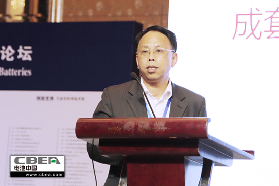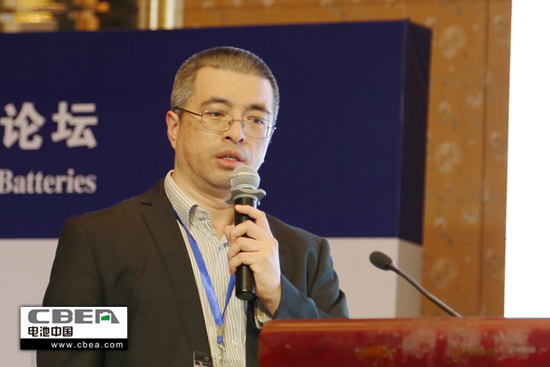 圖為天津力神電池股份有限公司研究院基礎(chǔ)研發(fā)部部長(zhǎng)王欣全博士發(fā)表演講