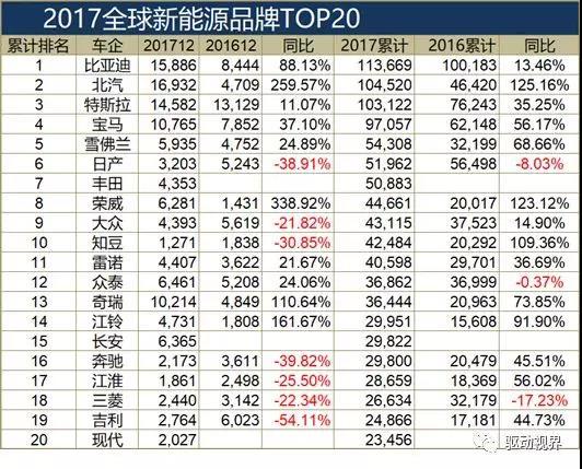 北汽新能源EC系列曾以月銷15,719輛的成績刷新了單一新能源車型月銷量紀錄,2017年北汽新能源汽車總銷量達到104,520輛,豪取全球新能源車企銷量亞軍,并且同比增速高達125.16%,位列2017全球新能源品牌TOP20第一。
