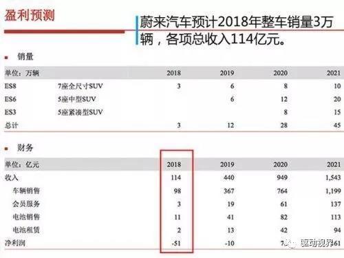 此前,網(wǎng)上爆料,2018年蔚來汽車收入預(yù)計為114億元,預(yù)測稱今年虧損達51億元,并且直到2020年才開始盈利。