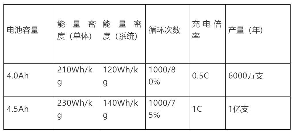 同時,蘇州力神還規(guī)劃在2020年實現(xiàn)容量6Ah的21700電芯的批量化生產(chǎn),目前預(yù)估系統(tǒng)能量密度在200wh/kg左右。