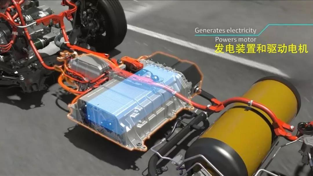 下面的視頻中,工作人員在進(jìn)行所有的操作前,先利用氦氣進(jìn)行氫氣泄漏測試;接著,工人們將燃料電池堆棧和高壓儲氫罐同時裝進(jìn)車?yán)?,隨后要進(jìn)行電動機(jī)的安裝以及將空氣壓縮器和燃料電池堆棧連接的工作。