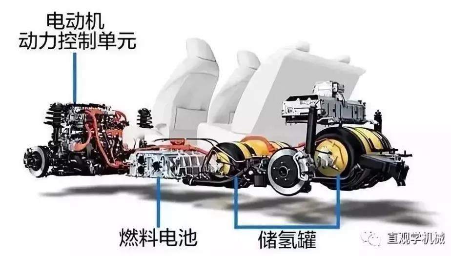 在安裝了燃料電池堆棧之后,升壓變換器、高壓儲氫罐和各種管道最后才被“塞進(jìn)”車?yán)铩?