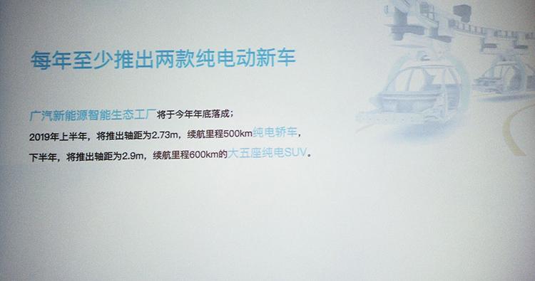 中國儲能網訊:近日,據廣汽新能源公布,2019年將推出兩款全新純電動車型——上半年將推出一款純電動轎車,下半年推出一款純電動SUV。據悉,兩車定位分別為中型轎車和中大型SUV。