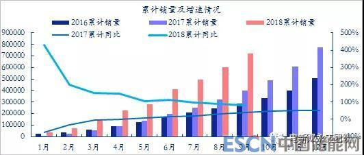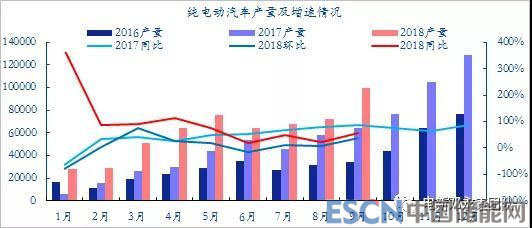 今年1-9月,新能源汽車產(chǎn)量累計達(dá)73.5萬輛,銷量累計達(dá)72.1萬輛,較17年1-9月的42.4萬輛累計產(chǎn)量與39.8萬輛累計銷量,分別增加了31.1萬輛和32.3萬輛。同比增速分別為73%和81.1%,增長態(tài)勢很好,其中2018年1-9月份的72.1萬銷量接近2017年全年的銷量77.7萬輛。