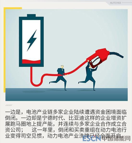 一邊卻是寧德時代、比亞迪這樣的企業(yè)增資擴(kuò)展跑馬圈地上提產(chǎn)能,并連續(xù)與多家企業(yè)合作成立合資公司; 這一年里,倒閉和買賣重組在動力電池行業(yè)變得司空見慣,動力電池產(chǎn)業(yè)洗牌已經(jīng)全面開啟。
