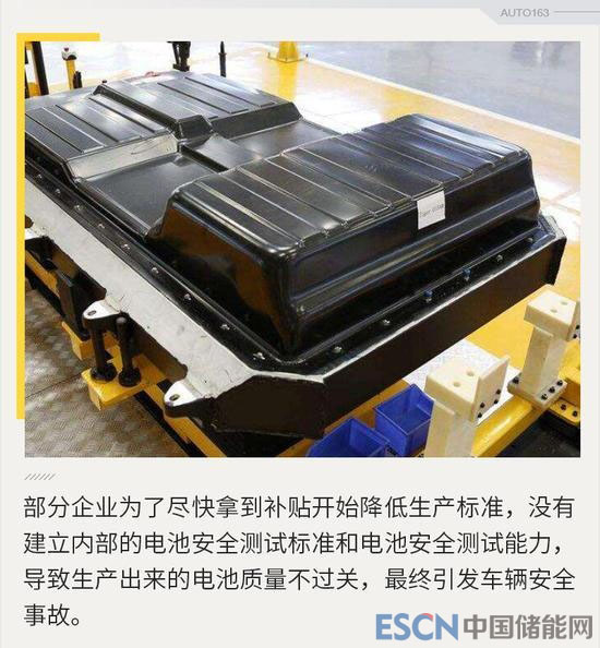 業(yè)內(nèi)人士表示,同往年相比今年電動汽車起火事件頻繁的原因在于,部分企業(yè)為了盡快拿到補(bǔ)貼開始降低生產(chǎn)標(biāo)準(zhǔn)。同時,很多企業(yè)并沒有建立內(nèi)部的電池安全測試標(biāo)準(zhǔn)和電池安全測試能力,導(dǎo)致生產(chǎn)出來的電池質(zhì)量不過關(guān),最終引發(fā)車輛安全事故。