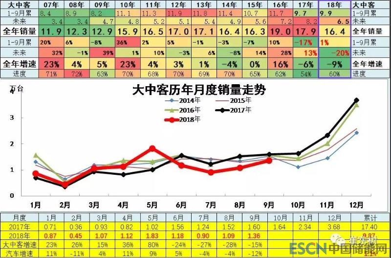 18年大中客銷量8.51萬臺,累計增速4.5%;18.8月銷量1.09萬臺,同比增長-28.4%,環(huán)比增長20.3%。。
