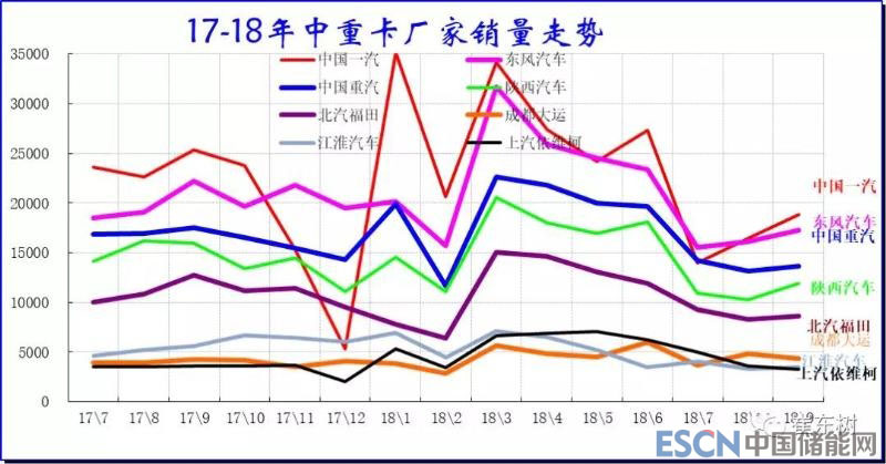 18年3-6月的中重卡基本都是同比17年高增長的狀態(tài),主力車企相對較好。今年7-9月的主力走勢分化,一汽9月走勢超強,重汽走勢較穩(wěn)。