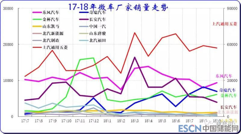 18年的9月的五菱走勢平穩(wěn)較強,而長安逐級回落,其他企業(yè)走勢壓力也較大,但奇瑞等電動微客企業(yè)表現(xiàn)較好。