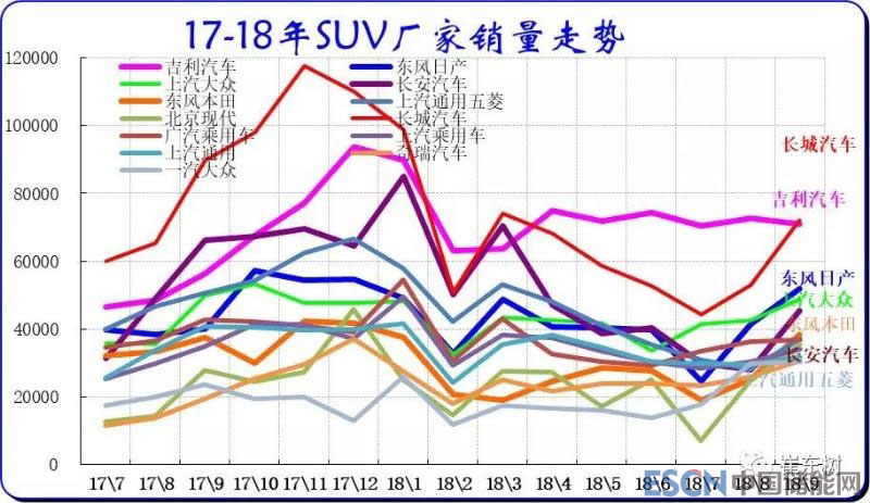吉利汽車的SUV正增長平穩(wěn),尚未體現(xiàn)秋季增量。長城的9月增長很強,未來自主SUV能否持續(xù)高增長仍待觀察。