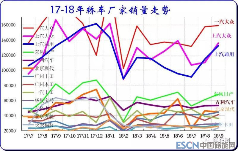 轎車主力廠家主要是合資三強。日產(chǎn)和吉利也是較強。尤其是吉利的銷量保持良好的平穩(wěn)水平。