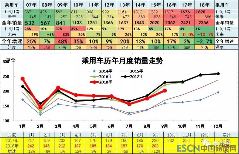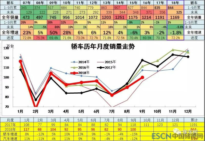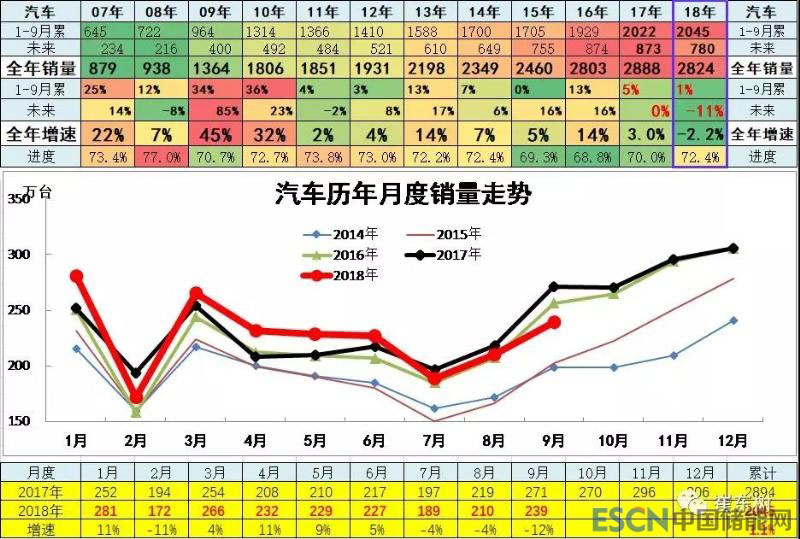 中國儲能網(wǎng)訊:2018年汽車市場總體走勢壓力較大,各細分板塊在9月表現(xiàn)都不是很強,隨著高基數(shù)的壓力凸顯,4季度的車市增長也有一定壓力。