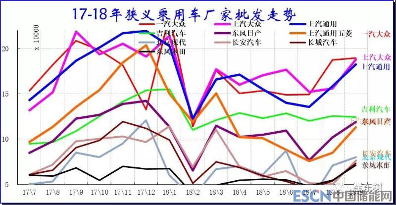 乘用車主力廠家成為三大陣營,前三甲在18萬左右,中間在12萬水平,后面的在月銷7萬臺左右。
