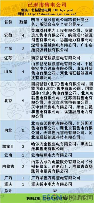 在山東世紀(jì)航凱售電有限公司申請(qǐng)退市之前不久,廣東電力交易中心發(fā)布通知稱,收到深圳市展誠售電有限公司、廣東啟晟能源科技有限公司兩家售電公司退出電力市場的退市申請(qǐng),這是廣東首例售電公司退出事件。據(jù)了解,這兩家售電公司均為民營售電公司,均成立于2016年,對(duì)于兩家售電公司的退出原因,廣東電力交易中心稱均為自愿退出電力市場。在廣東電力交易中心4月16日提供的146家提供保函、合計(jì)金額7.08億元的售電公司名單里,沒有發(fā)現(xiàn)上述兩家售電公司的身影,可見退出電力市場早有計(jì)劃。至此,江蘇、廣東、山東、三大電力消費(fèi)大省均有售電公司退市,其他省份售電公司生存狀態(tài)可見一斑。截止2018年10月,全國退市售電公司情況如下: