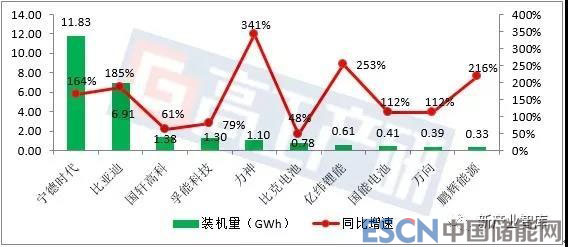 從裝機量TOP10企業(yè)排名來看,1-9月裝機量排名除前三企業(yè)與去年同期相比未發(fā)生變動之外,其余4-10名排位均有變化。其中,力神較去年同期相比增長高達341%,由去年的第11名上升至今年的第五名,競爭格局尤為激烈。