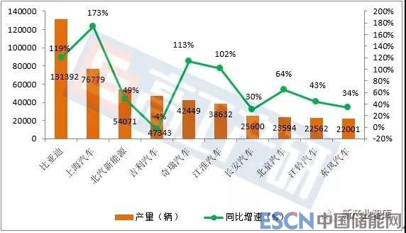 在補貼換擋影響逐漸消退的形勢下,9月我國新能源汽車產量突破10萬輛,同比增速達到40%,全年完成生產100萬輛目標將是大概率事情。其中,1-9月新能源汽車產量TOP10車企合計約為47.5萬輛,占整體的71%。