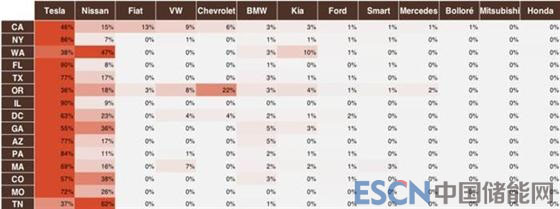 不過,中美新能源市場也有所不同,如美國各個城市新能源汽車市場的競爭格局較為類似,而中國的部分城市則存在本地企業(yè)一家獨大的情況。