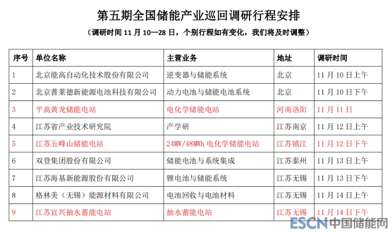 第五期中國儲能產(chǎn)業(yè)巡回調(diào)研具體行程安排發(fā)布