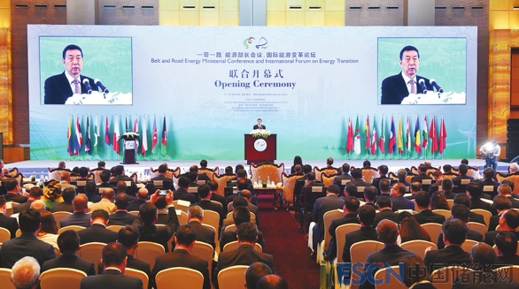 圖為“一帶一路”能源部長(zhǎng)會(huì)議、國(guó)際能源變革論壇開幕現(xiàn)場(chǎng)。國(guó)務(wù)委員王勇出席開幕式,宣讀習(xí)近平主席的賀信并致辭。范超 攝