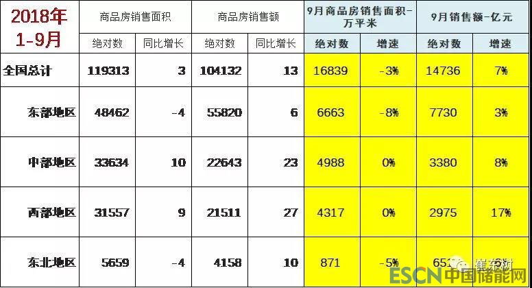 1-9月份,東部地區(qū)商品房銷售面積48462萬平方米,同比下降4.3%,降幅比1-8月份擴(kuò)大0.7個百分點;銷售額55820億元,增長6.0%,增速回落0.5個百分點。中部地區(qū)商品房銷售面積33634萬平方米,增長10.2%,增速回落1.9個百分點;銷售額22643億元,增長22.7%,增速回落3.1個百分點。西部地區(qū)商品房銷售面積31557萬平方米,增長8.9%,增速回落1.5個百分點;銷售額21511億元,增長26.6%,增速回落1.6個百分點。東北地區(qū)商品房銷售面積5659萬平方米,下降3.5%,降幅擴(kuò)大0.3個百分點;銷售額4158億元,增長9.7%,增速回落0.7個百分點。
