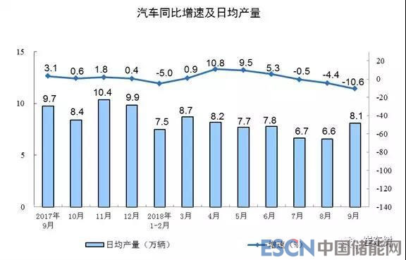 分產(chǎn)品看,1-9月份汽車生產(chǎn)2084萬輛,增長1%;9月30天的日均汽車生產(chǎn)8.1萬臺??紤]到17年9月的9.7萬的較低增速,今年增速-10.6%的表現(xiàn)相對不好。